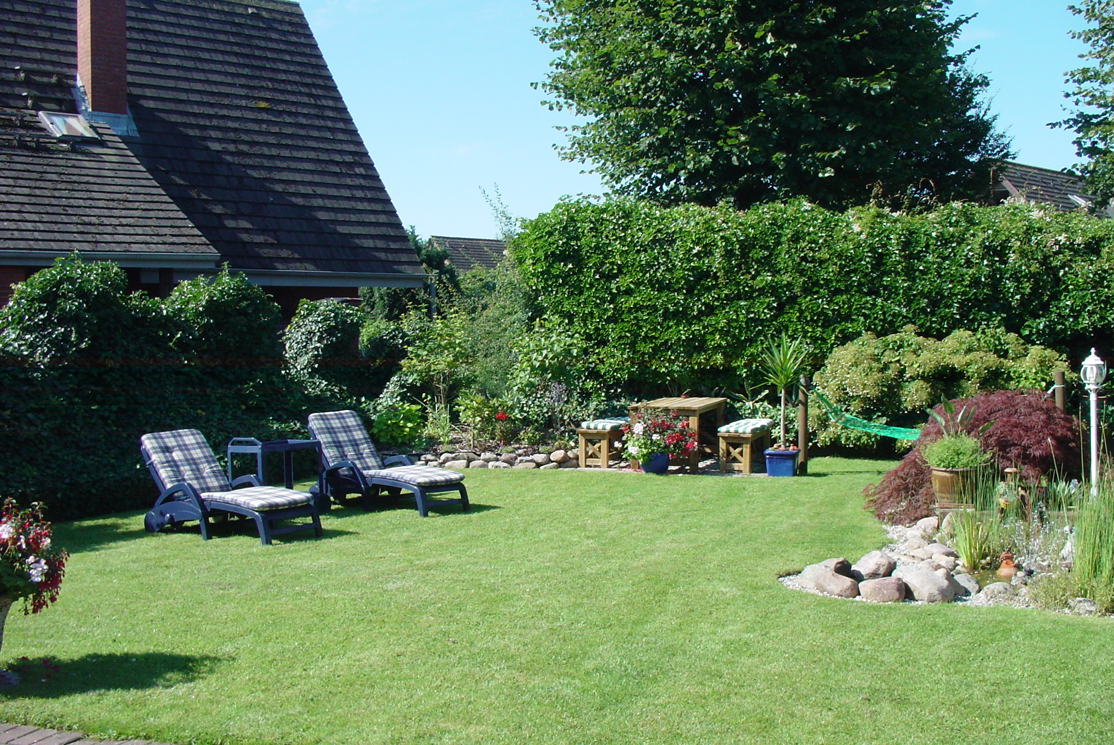 Das Haus ist eingebettet in einer wunderschönen Gartenanlage. Hier wird gerne ausgiebig geplauscht,
